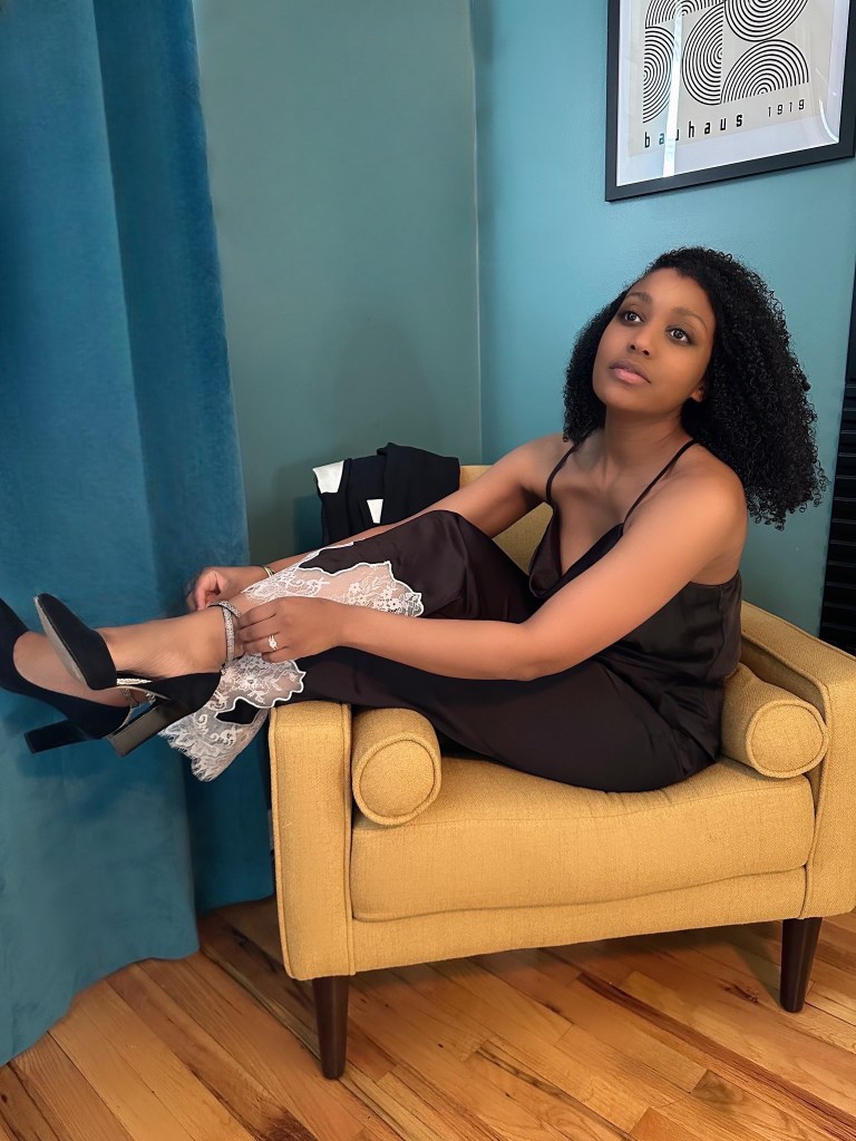 A great way to add dimension to your satin pajama set is by mixing fabrics and textures as I’ve done here with my footwear and lace detailing. Satin is a beautiful fabric, but pairing it with something like leather, velvet, or wool can create a rich, layered look. A leather jacket adds an unexpected contrast, breaking up the smoothness of satin while giving off a cool, edgy vibe. Suede accessories, whether a pair of shoes or a clutch, create a tactile contrast that feels luxe and thoughtful. You can also add a silk scarf or shawl for an extra touch of vintage glam, especially if you’re aiming for a classic, old-Hollywood-inspired look.
