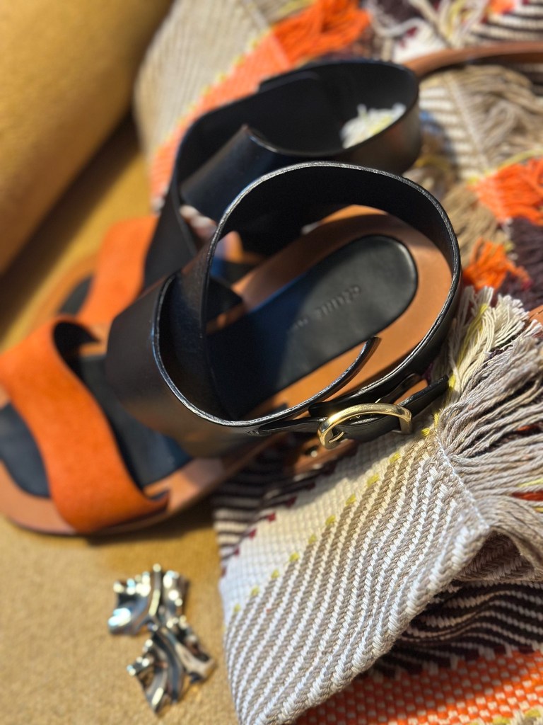 I originally styled the look with archival Celine flats from the Phoebe Philo era, which is a collector’s item in minimalism. I adore these because of their connection to the incomparable Ms. Philo; however, since they’re no longer available, I suggest Schutz’s Lois Flat as a worthy alternative. The silhouette is clean and sculpted with a similar low profile and modern restraint. It’s a quietly luxurious finish, and much more accessible.
