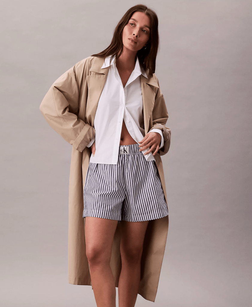- Calvin Klein Poplin Striped Boxer Shorts – $34.50 Light and carefree. This pair can really be styled with everything from kitten heels to Mary Jane flats or loafers with socks.