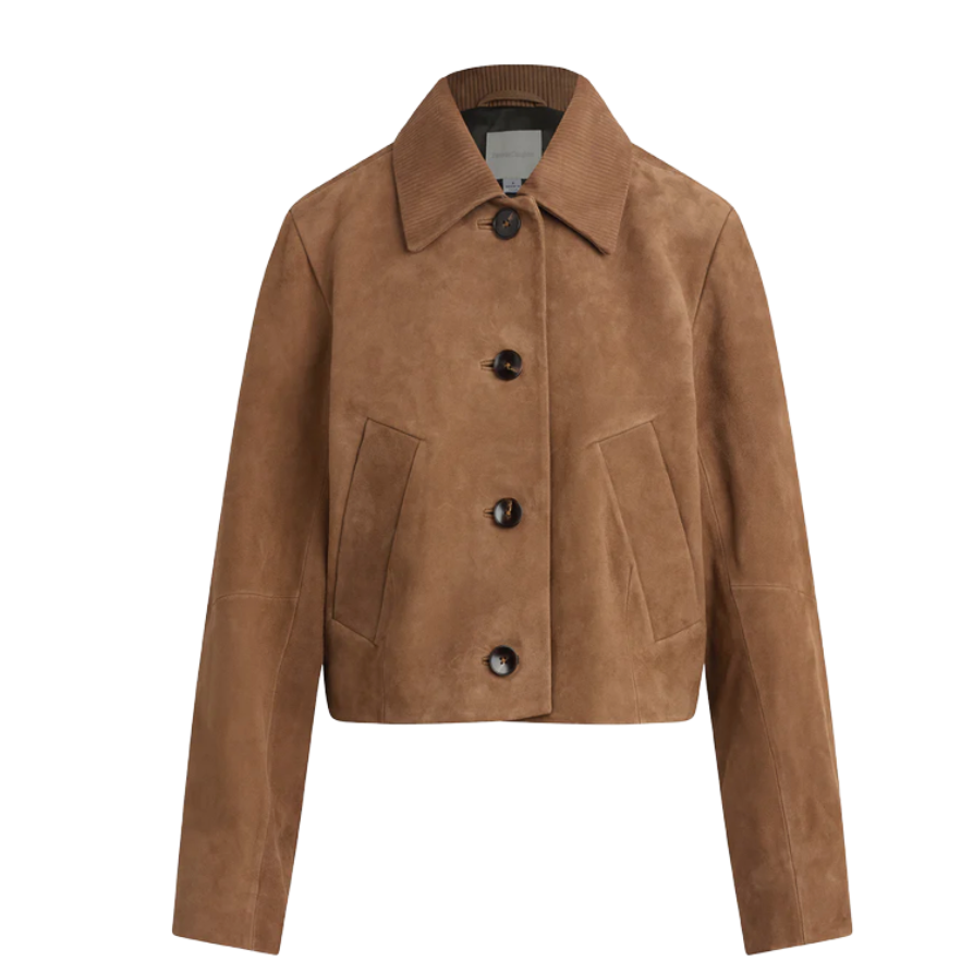 A clean lined, collared suede jacket that channels quiet luxury. The Lucie’s minimalist tailoring makes it endlessly versatile, it could just as easily top a shift dress for the office as it could off duty denim. It is a piece that proves investment suede does not need to shout.