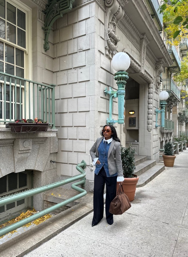 For obvious reasons, the denim vest should not serve as your outermost layer for fall/winter; but it really thrives when it becomes the layer before the layer. I styled it underneath a structured houndstooth blazer to achieve a high-low contrast that felt pulled together directly from the Ralph Lauren East Coast prep playbook. You can also slip it under a sweeping wool overcoat for a menswear-meets-street-style effect or let it peek out from beneath a longline puffer to break up the visual monotony of super technical fabrics. As a mid-layer, the denim vest gives subtle dimension and a nice little element of surprise where it’s least expected.